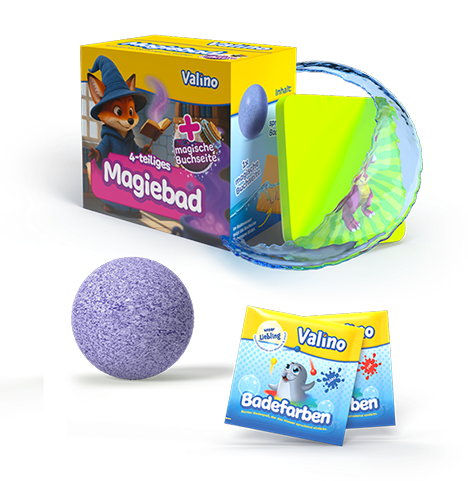 Mit dem umfangreichen Bade-Geschenksets tauchst du tief in Valinos bunte Badewelt ein und erlebst unglaublich viele Abenteuer.